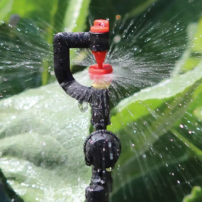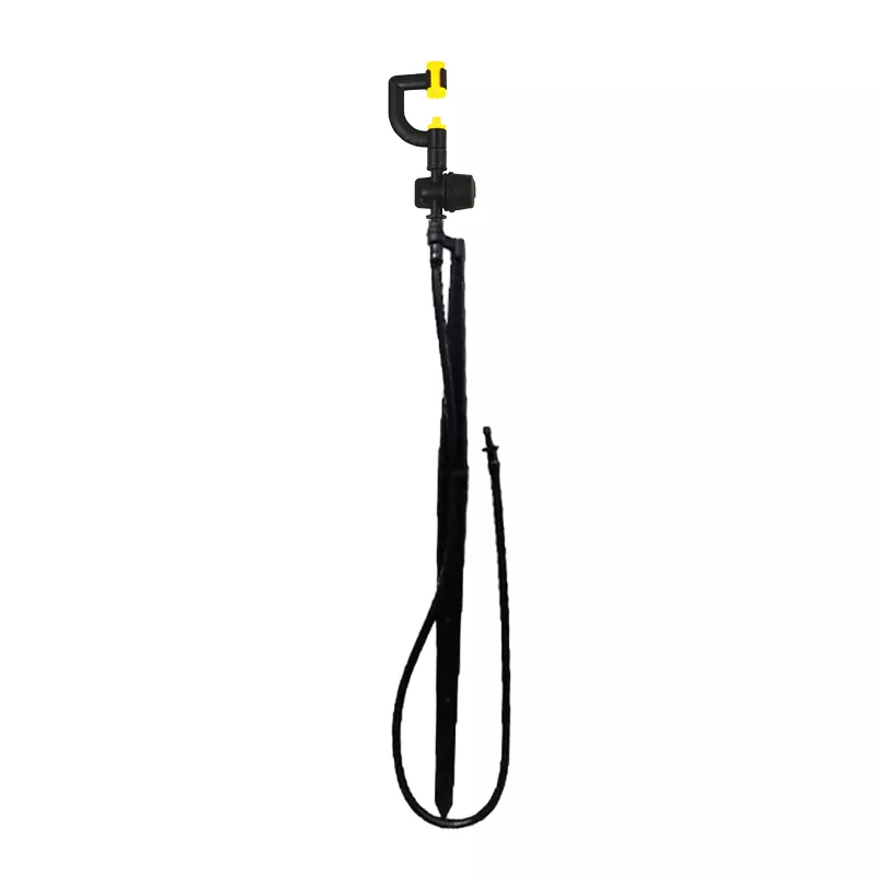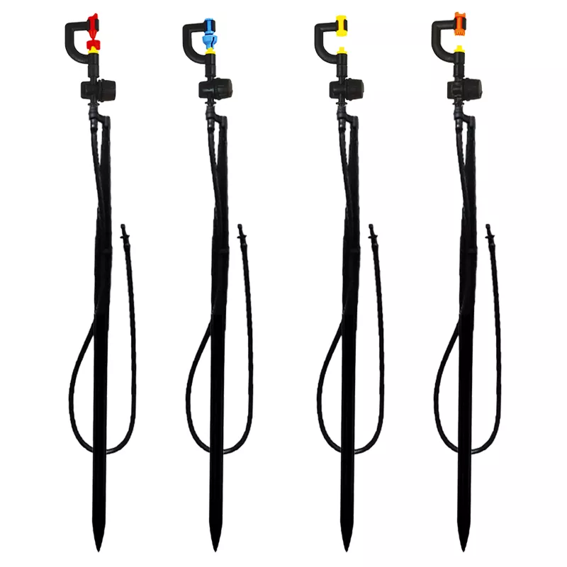 Los resistentes clavos de conexión equipados están diseñados para un uso práctico; una vez insertados en el suelo, pueden fijar firmemente la boquilla y evitar que se mueva debido al impacto del viento o del flujo de agua. Mientras tanto, el ángulo de pulverización elevado permite que el flujo de agua pase sobre la capa superficial de la vegetación y cubra uniformemente el área de las raíces, reduciendo la evaporación del agua y mejorando significativamente la eficiencia del riego, eliminando la necesidad de ajustes repetidos de posición y riego suplementario.