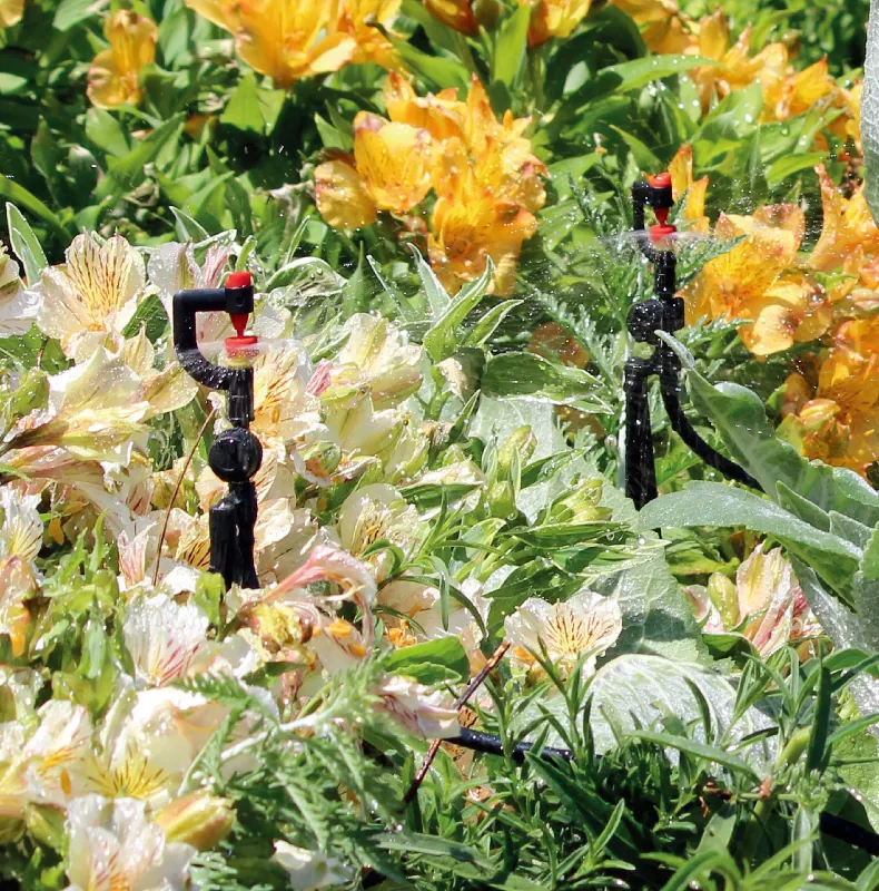 El G-FRAME SPRAYERS es un micropulverizador con sistema de encendido. Mueva las unidades para obtener el nivel requerido. cobertura o cambie los diferentes cabezales para adaptarlos a los patrones de pulverización. CARACTERÍSTICAS 1. Cabezales de repuesto para patrones diferentes y fácil instalación. 2.No se requieren herramientas. 3.Elección de seis patrones de rociado: giratorio, niebla de 180° y giro antiinsectos de 360°, rociado en tiras y chorro de 360°. Niebla descendente de 360° y niebla plana. 4.Hay boquillas de 0,9 mm, 1,0 mm, 1,1 mm, 1,2 mm y 1,5 mm listas para satisfacer el caudal especial necesario. La oferta estándar es de 1,2 mm. APLICACIONES Adecuado para grandes macizos de flores, frutales, huertos, jardines domésticos y paisajísticos y hortícolas. aplicaciones.