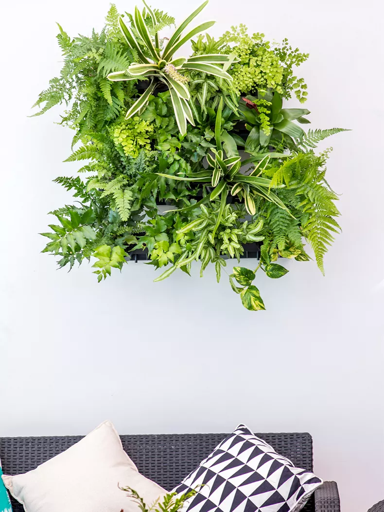Para garantizar un magnífico GreenWall, se incluye un sistema de riego que suministra cantidades controladas de agua a las macetas; la cantidad correcta de agua es fundamental para mantener las plantas nutridas y con una vida larga.