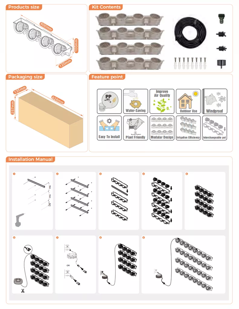 Watex es un fabricante y proveedor especializado en kits de inicio de jardinería vertical. Este kit de inicio de jardinería vertical My Design es adecuado para jardineros novatos. Permite la plantación vertical en paredes, lo que permite a los usuarios cultivar sus plantas verdes favoritas. Watex tiene 30 años de experiencia en comercio exterior en China. La empresa exporta sus productos a países de Australia, Europa y otras regiones. Es una empresa confiable