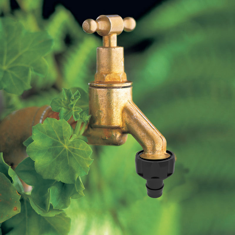 La TUERCA Y LAS COLAS se adaptan a los grifos de agua y conectan todos los tamaños de tubería de polietileno para facilitar la instalación.