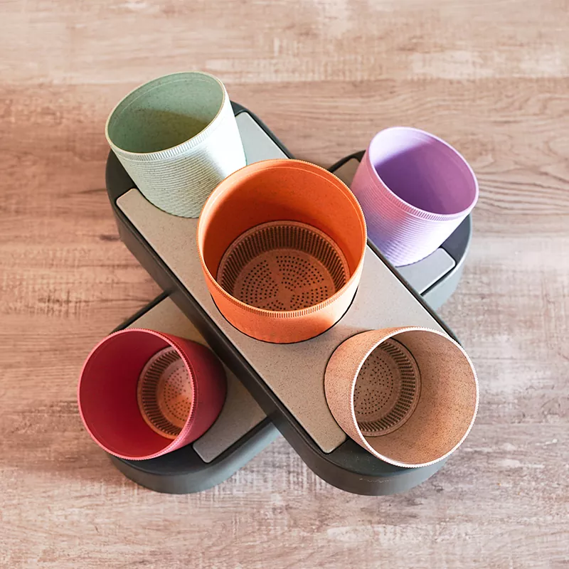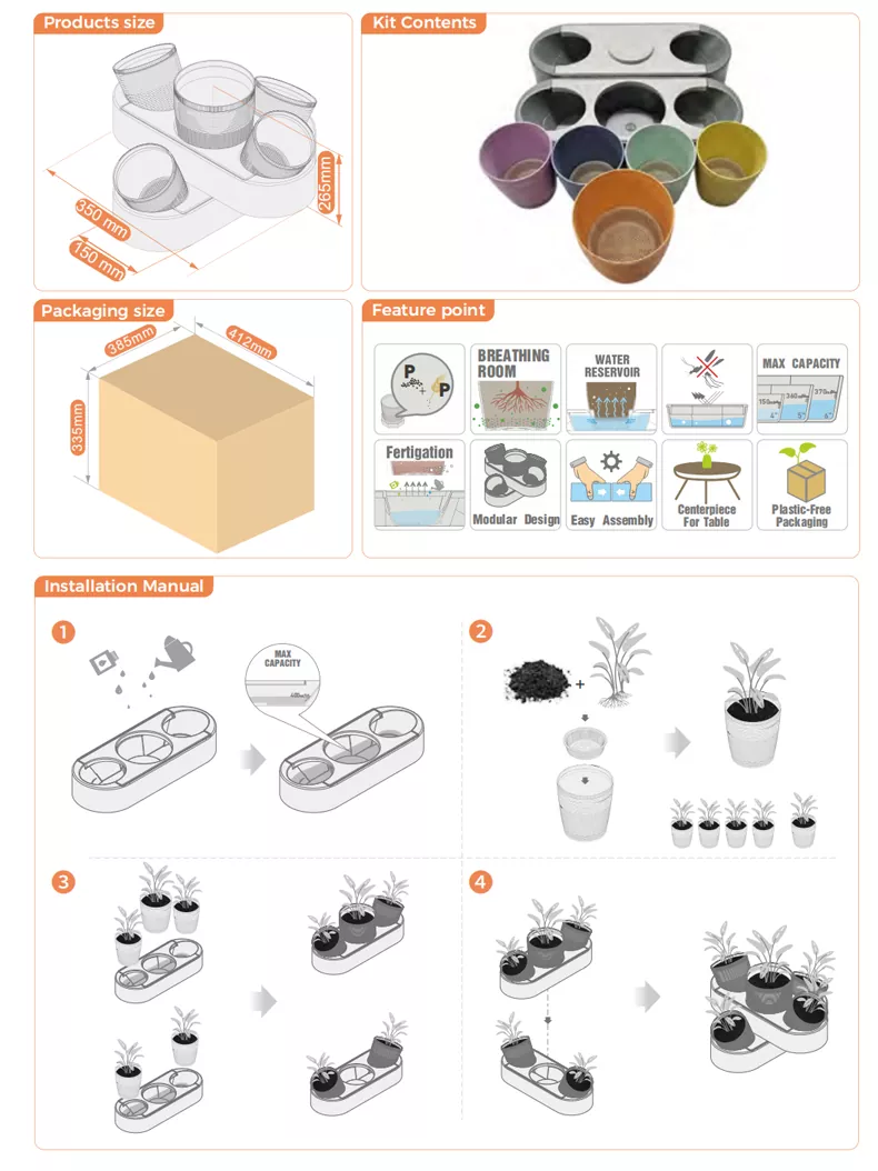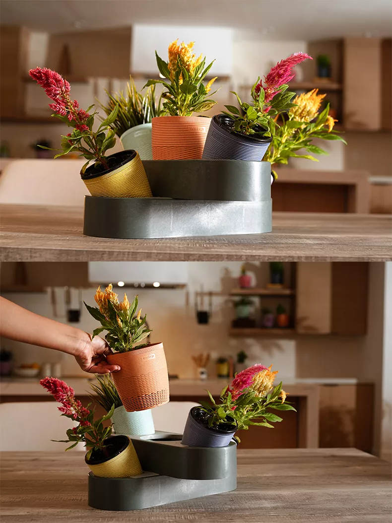 Apile las dos bases de almacenamiento de agua en forma transversal y luego coloque las macetas dentro de ellas. Hecho de materiales plásticos de paja de trigo ecológicos y de alta calidad, el kit de jardín de escritorio apilable Watex no solo es elegante sino también duradero y duradero. Stackable Desktop Garden es increíblemente fácil de configurar y una excelente adición a cualquier hogar.
