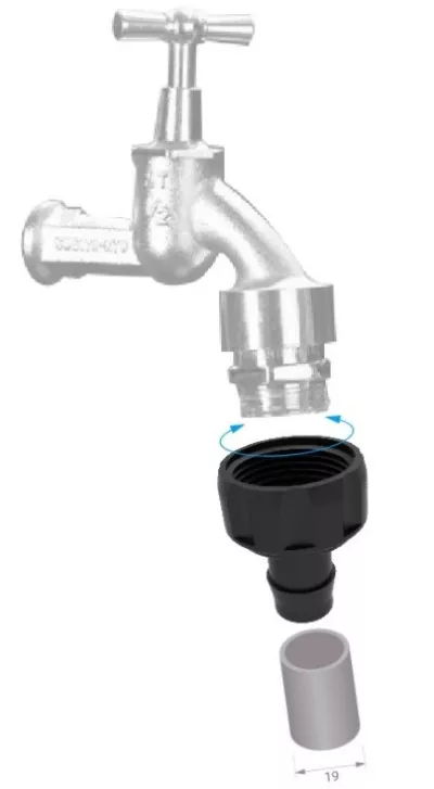 Adaptador para grifo de 3/4" con púa de 19 mm